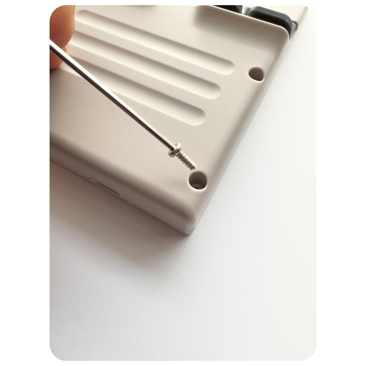 Pick which side of the device you want to install the wrist strap on.
